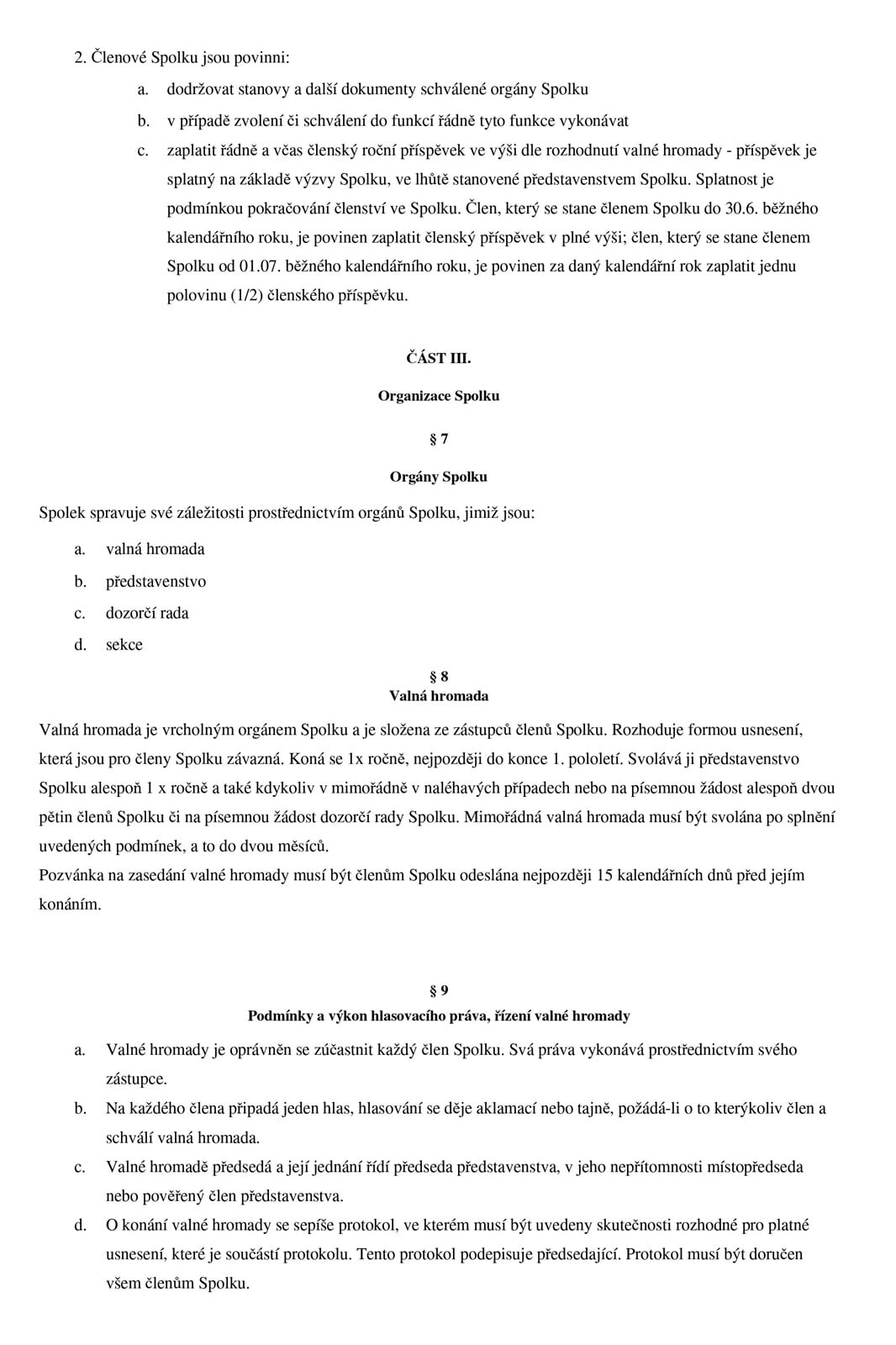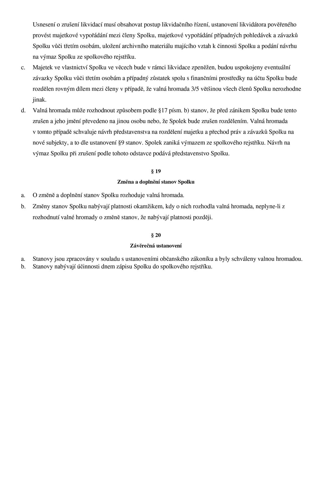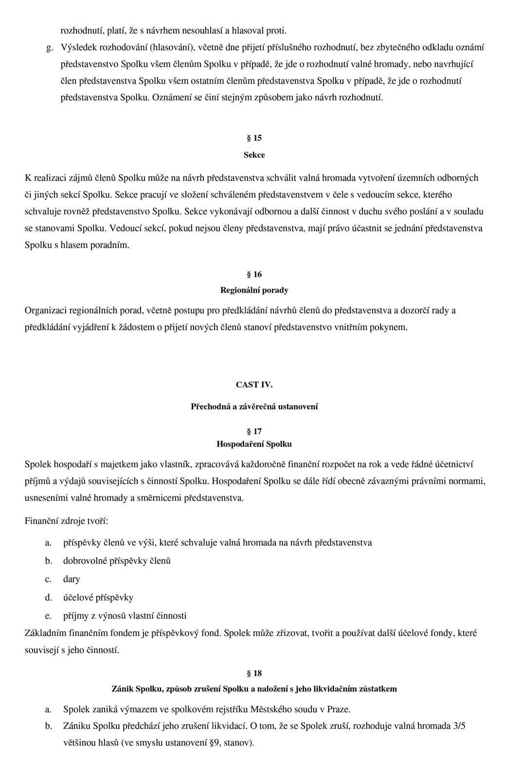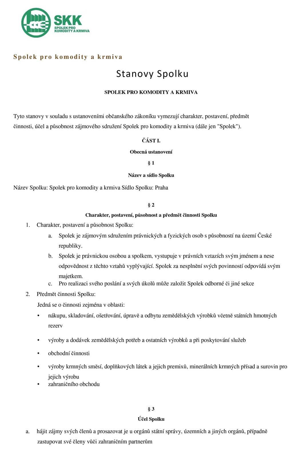 Stanovy spolku